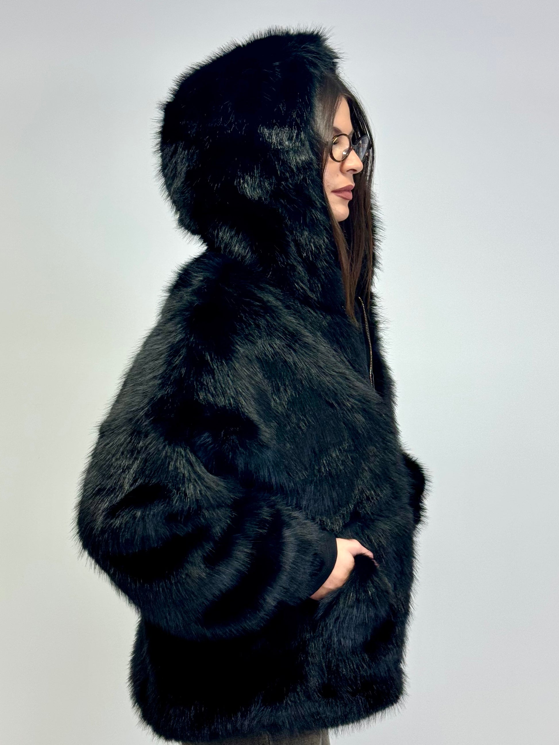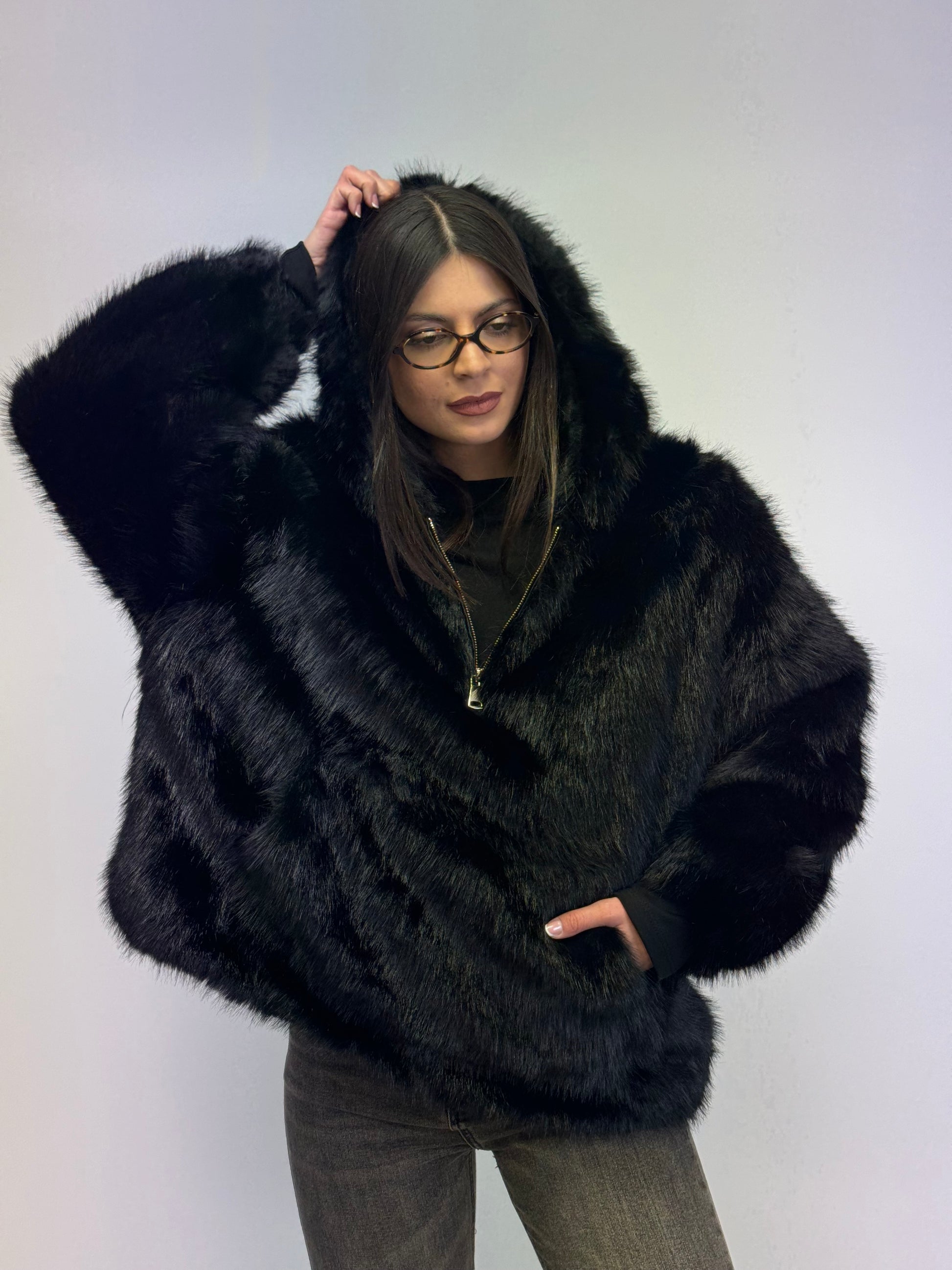 Felpa pelliccia over nero